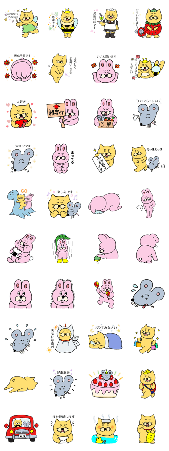ねこのにゃんたろうと仲間のネズ太、うさへいのスタンプ第三弾です。丁寧語多めで日常で使いやすいスタンプです。 家族,友達,お仕事など様々なシーンで使ってくださいね。