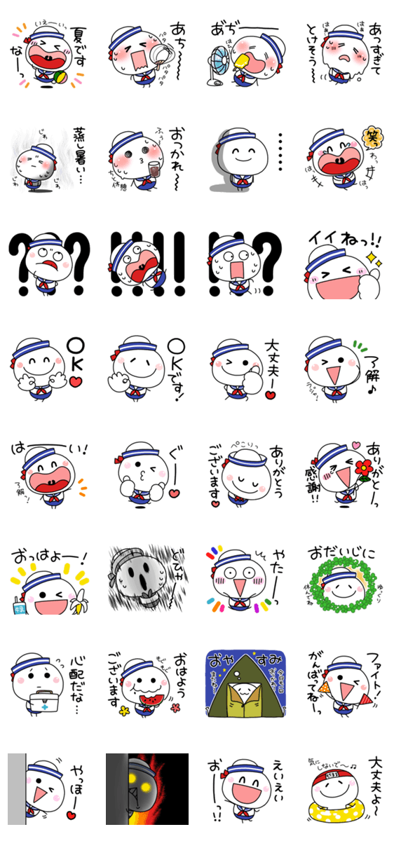 もちまるシリーズの夏編♪夏にピッタリのスタンプです⭐︎