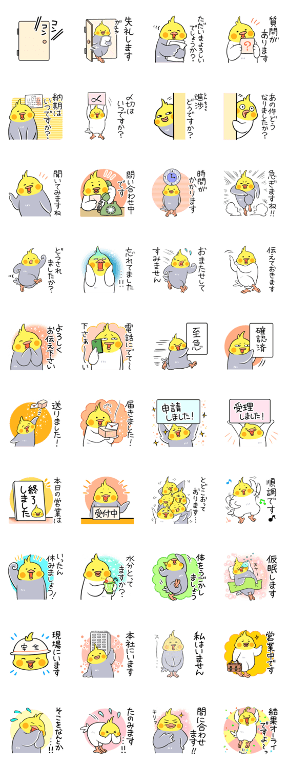 オカメインコの敬語スタンプ3です。仕事の場面などに使えます。
