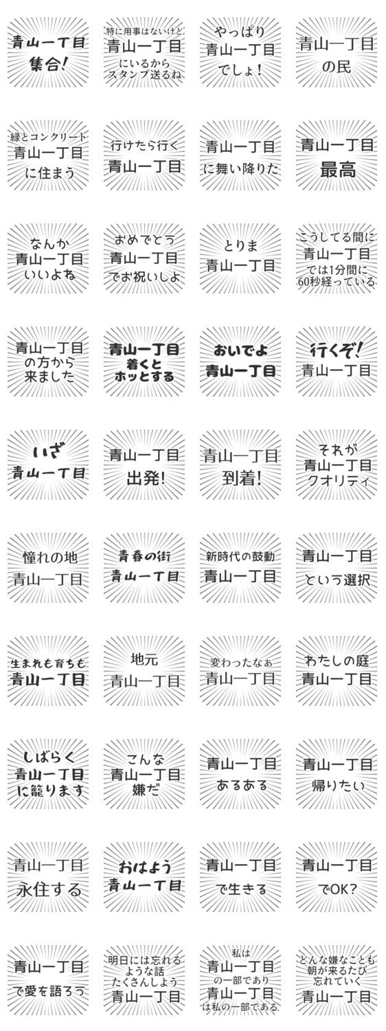 東京を舞台にした漫画風セリフスタンプ。集中線で叫べ。地元の人にも憧れてる人にも。面白いのが見つかると嬉しい。集中線。地元愛。
