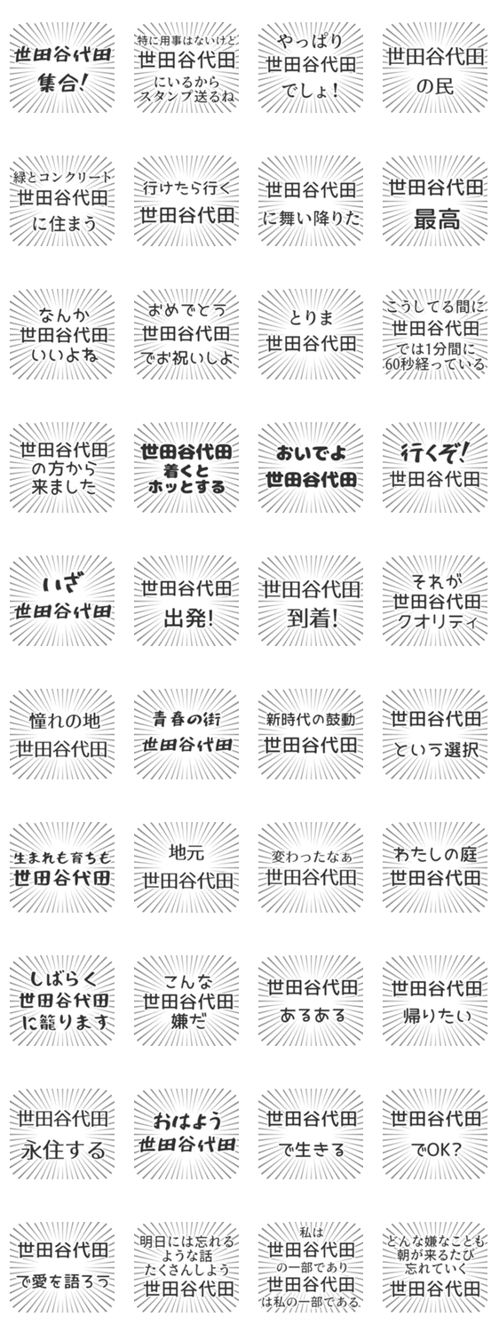 東京を舞台にした漫画風セリフスタンプ。集中線で叫べ。地元の人にも憧れてる人にも。面白いのが見つかると嬉しい。集中線。地元愛。