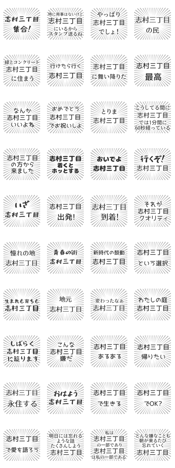 東京を舞台にした漫画風セリフスタンプ。集中線で叫べ。地元の人にも憧れてる人にも。面白いのが見つかると嬉しい。集中線。地元愛。