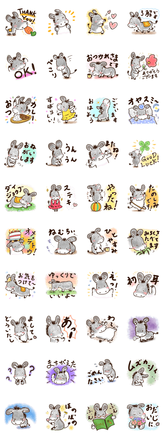 かわいいロバさんの使いやすいスタンプです。ロバさんと一緒に毎日楽しくのんびり過ごしましょう♪