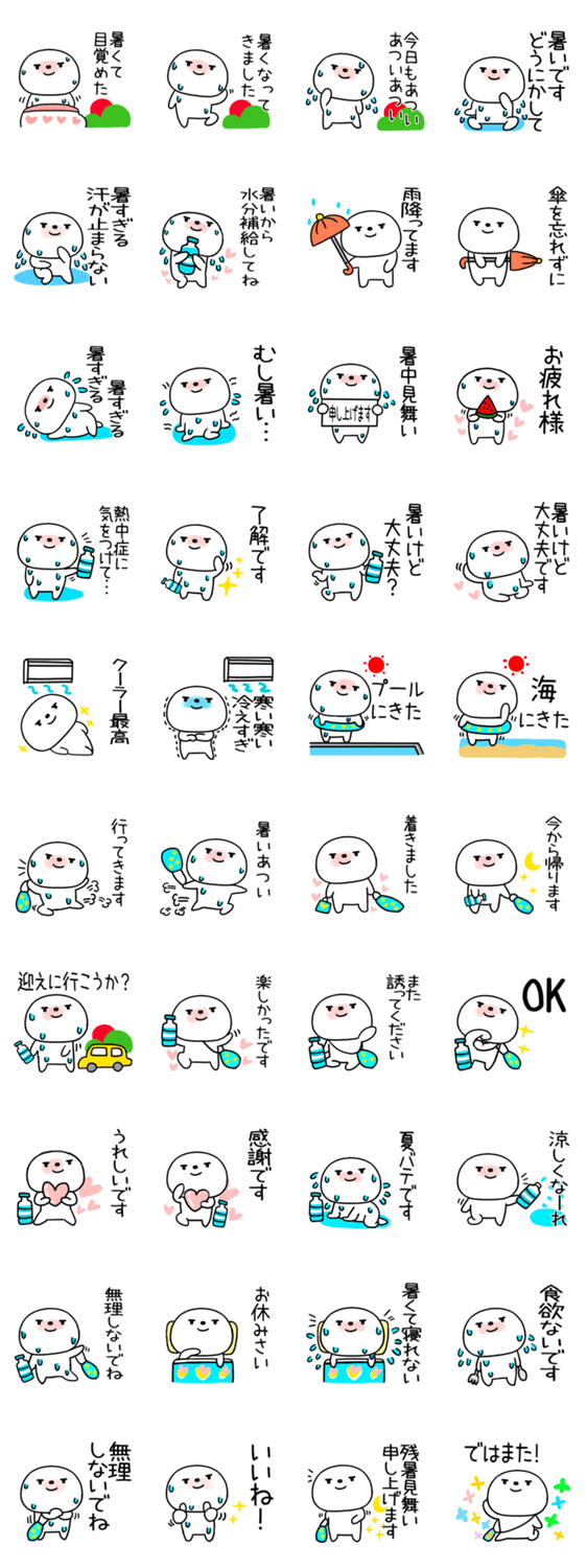 暑い夏に毎日使える言葉を選んだなつ専用スタンプです。(もるきゅた作)