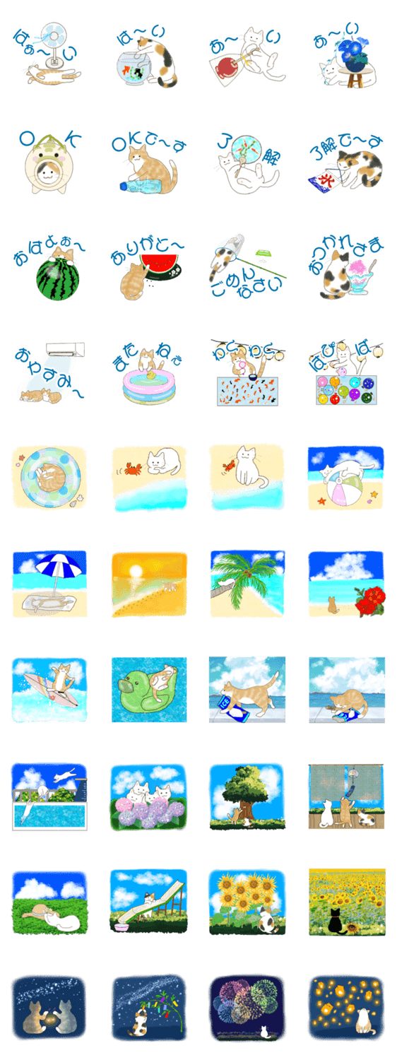 | スタンプ説明 | 夏用のスタンプです。 良く使う文字と文字無しが入ってます。 |