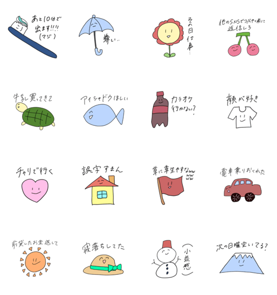 わざわざ文字を打つのが面倒なあなたのためのスタンプ。日常の具体的な言葉をこのスタンプで伝えましょう。