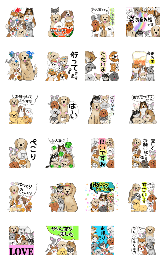 ❤️飛び出して動く可愛いたくさんの犬たち -LINEスタンプマニア
