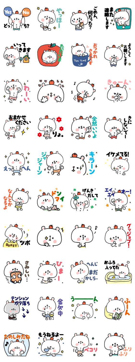 頭にリンゴを乗せた、くまのアプリスタンプその2。kahoのスタンプ第33弾♪