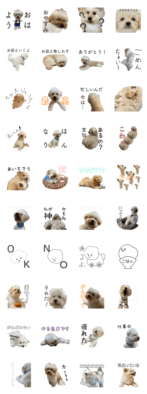 『ころもがさくふわっ』で配信中!ビションプーのころものスタンプです。ころものかわいい姿を使いやすいスタンプにしました!犬好きの人に送ったら大喜び間違いなしです♡