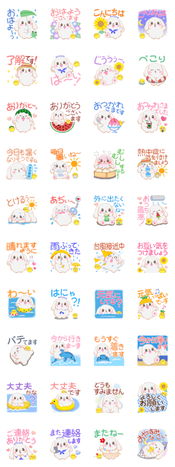 ベイビーうさぎさんの夏の日常な使えるスタンプです。