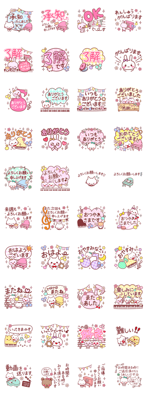 ピアノ・音楽が大好きなねことくまとうさぎとハムスターの日常スタンプです。普段の会話や、ピアノの先生とやりとりする際にも使っていただけたら嬉しいです♪