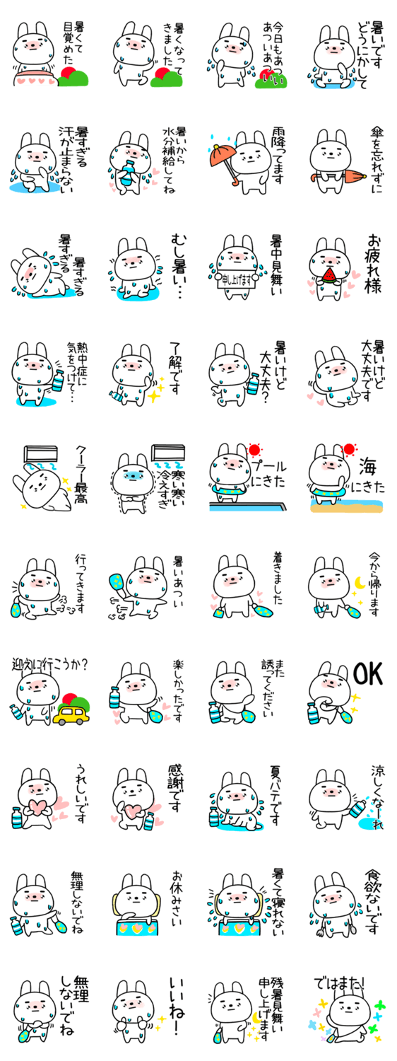 毎日使えるうさぎ@夏スタンプ@48 -LINEスタンプマニア