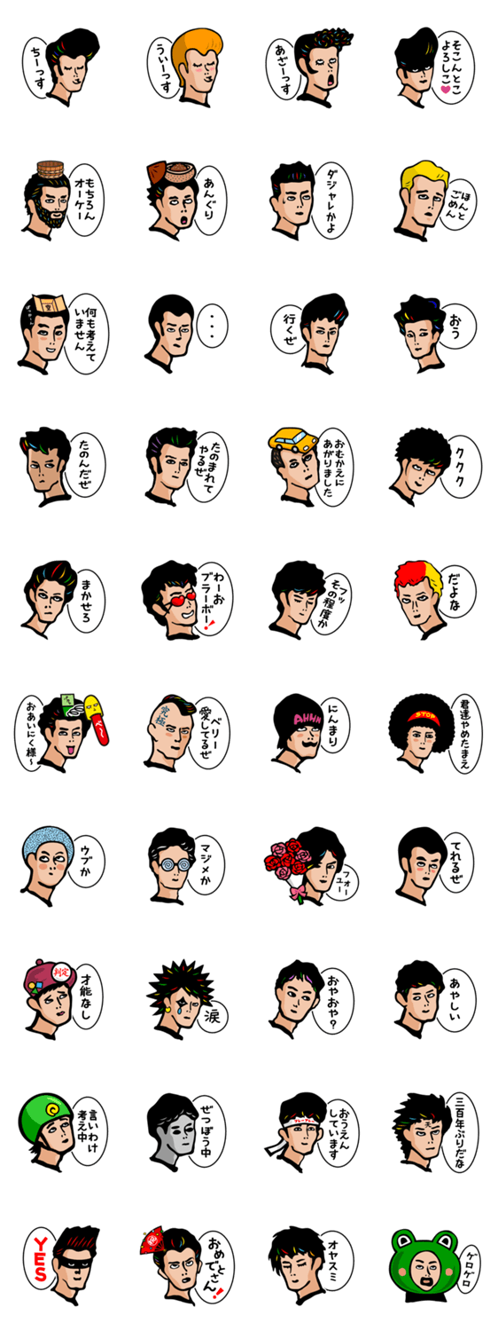 少しレトロなカッコイイお兄さん達のスタンプです。
