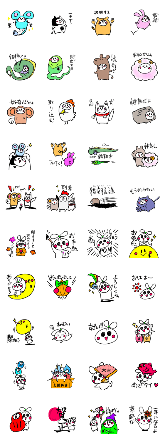 干支風ドミーノと玉ねぎりぼんちゃん -LINEスタンプマニア
