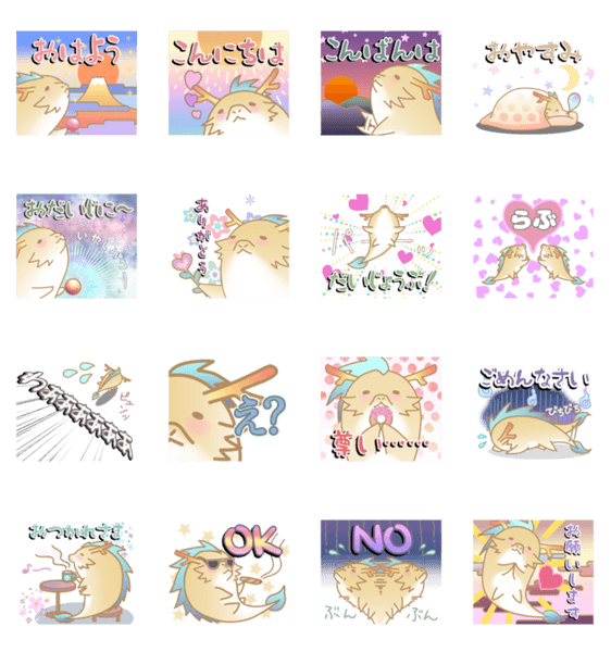 スタンプ説明 幸せ太りした幸せなドラゴン。