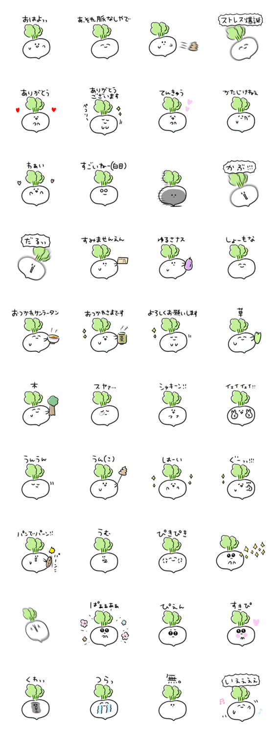 カブのシンプルで使いやすいスタンプです。[ゆるかわ シュール 可愛い 食べ物 敬語 ダジャレ 毒舌]