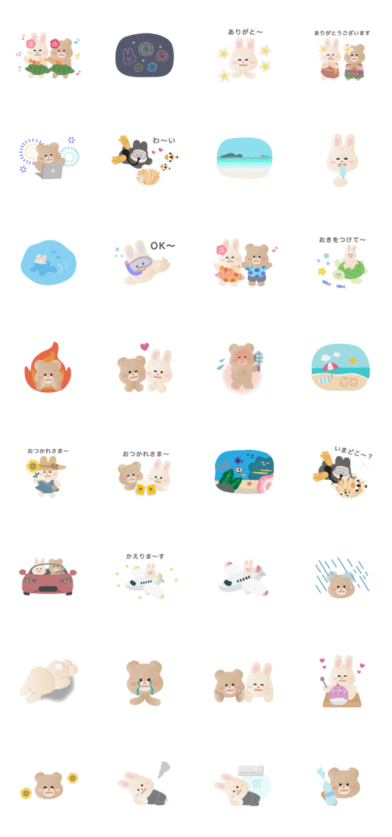うさぎとくまの夏 in the sea -LINEスタンプマニア