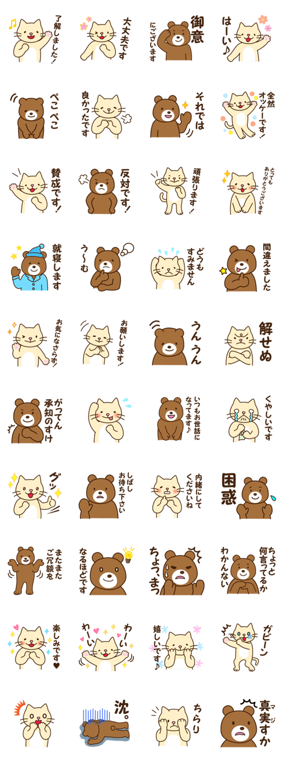 ネコとクマのほんわか和み系スタンプ第2弾!「です・ます」口調のスタンプです。会社や学校の先輩や、ちょっとしたお知り合いの方に使ってみよう!