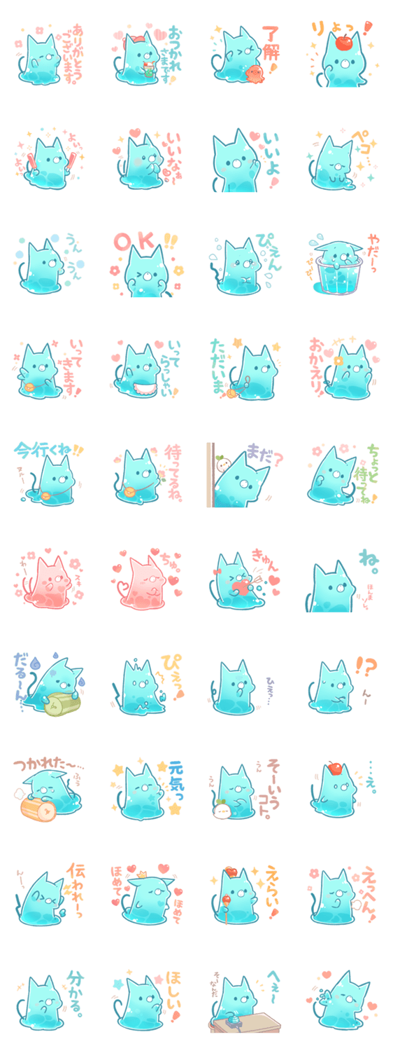 ぷるぷるぷよぷよなねこさんの毎日使えるスタンプです。日常で使えるリアクションや相づち、挨拶が沢山入っています。