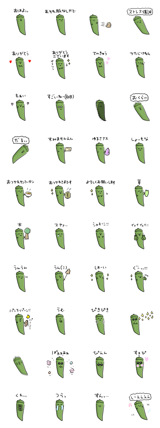 オクラのシンプルで使いやすいスタンプです。[ゆるかわ シュール 可愛い 食べ物 敬語 ダジャレ 毒舌]