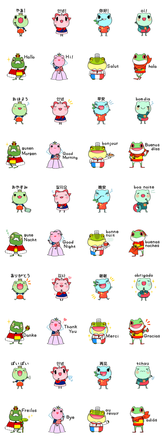 「カエルのクク」のスタンプ第二弾が早くも登場!「神経衰弱 - Melancholy」に登場のククの友達や家族がスタンプに!世界のあいさつをしますよ♪