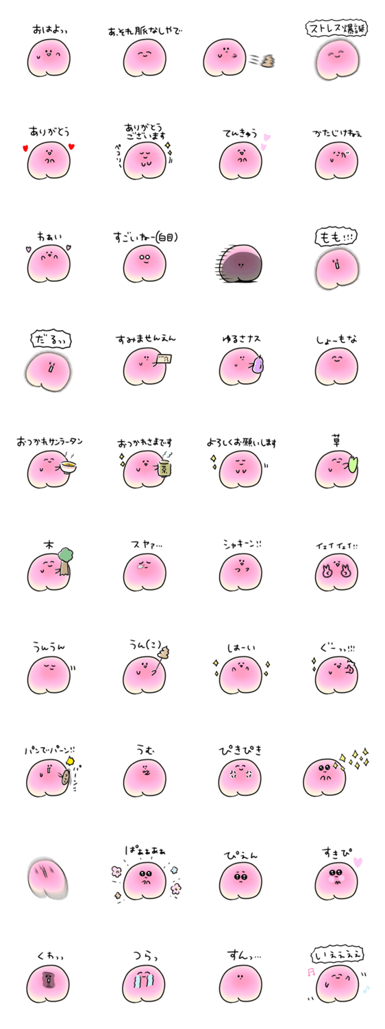 モモのシンプルで使いやすいスタンプです。[ゆるかわ シュール 可愛い 食べ物 敬語 ダジャレ 毒舌]