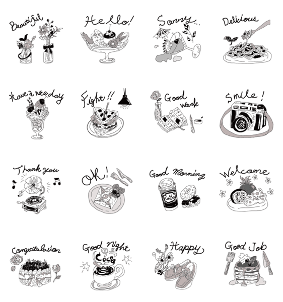 おしゃれ 英語 あいさつ トロ スタンプ 鉛筆 画風 モノトーン