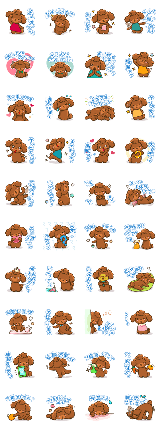 毎日しあわせいっぱいなトイプードルの敬語スタンプです。みんなに送れる使いやすいスタンプです。