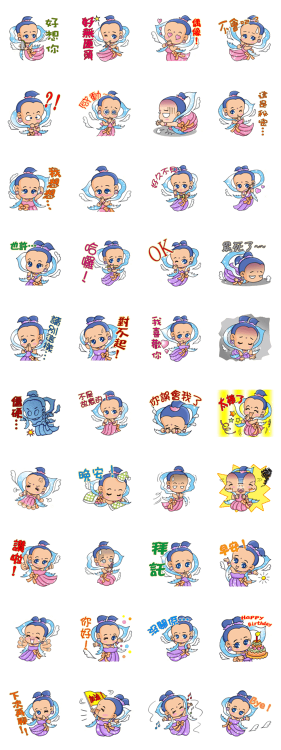 | スタンプ説明 | "Pian Pian" And "Fei Fei", the lovely, sprightly and nifty little flying girls are your mood's best spokesman. |