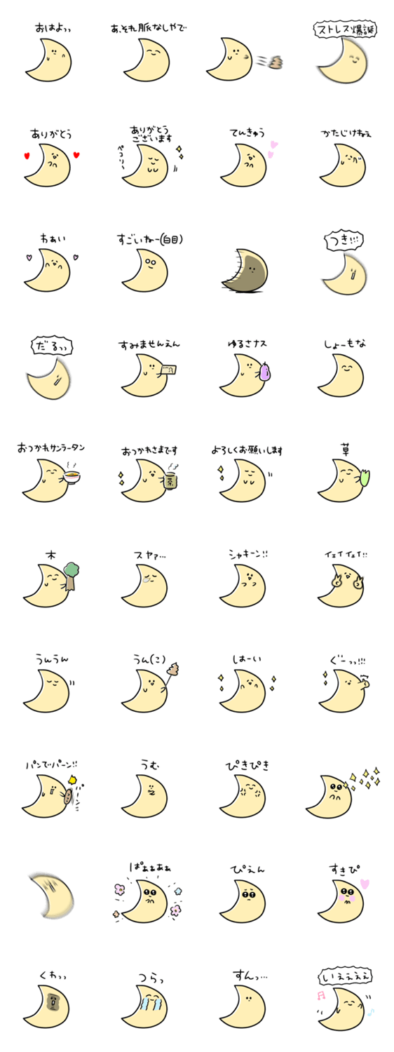 つきのシンプルで使いやすいスタンプです。[ゆるかわ シュール 可愛い 敬語 ダジャレ 毒舌]