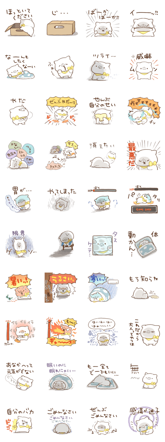ネガティブ表現特集に参加♪いつもとは違うネガティブ姿なこどもにゃんこスタンプです。そんな時もあるよね。