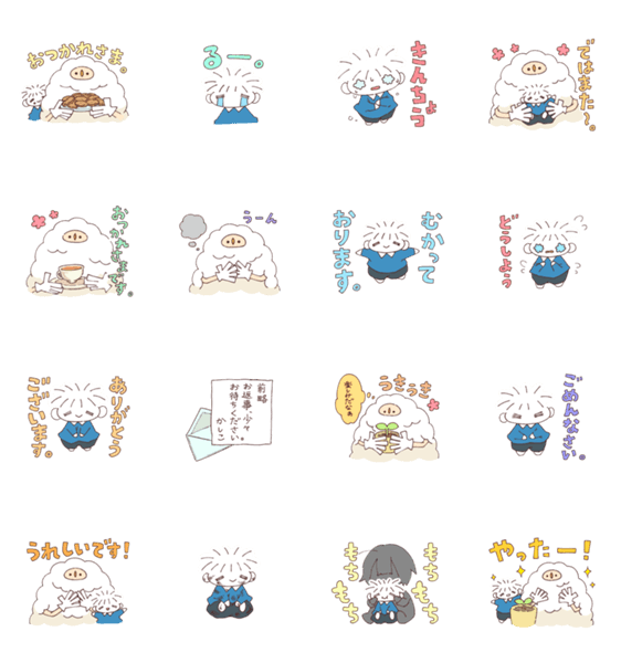 『あしたはきみとみるせかい』のスタンプ第1弾です。みうら君とヨセフィーさんが登場します。