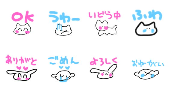 白ネコのあいうえお・・・ってるスタンプ