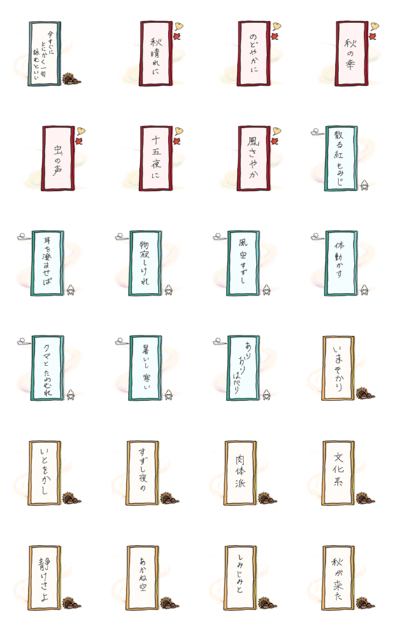 組み合わせて俳句風にしても良し、なんとなくの五文字を投げて良し。使い方は気分のままに。秋編です。