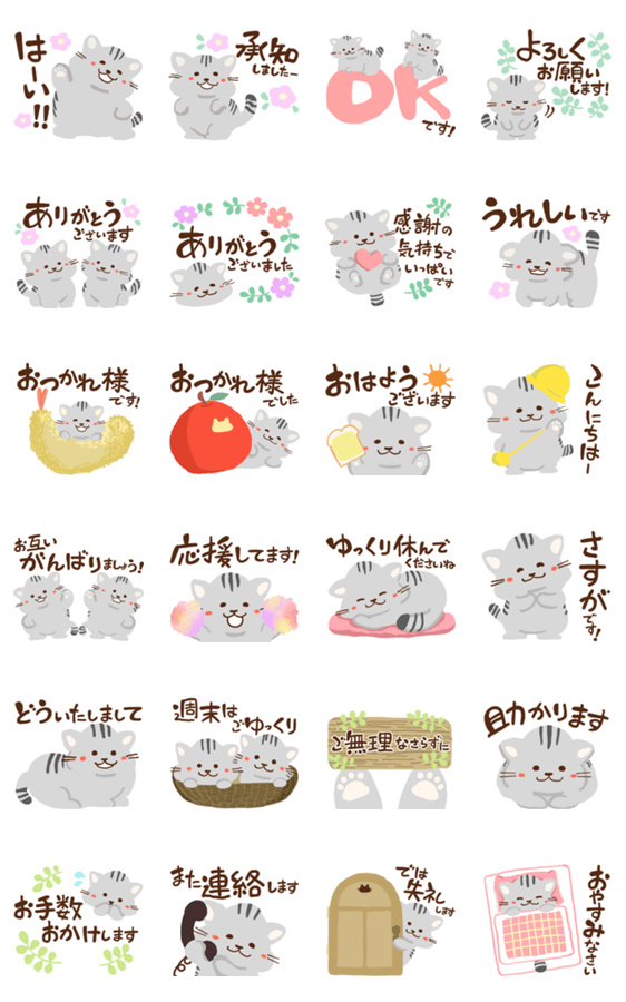 日常に使えるアメショ(アメリカンショートヘア)の子猫の敬語スタンプです。大きい文字(デカ文字)で見やすく、大人女子が使いやすいかわいすぎない優しいスタンプです。
