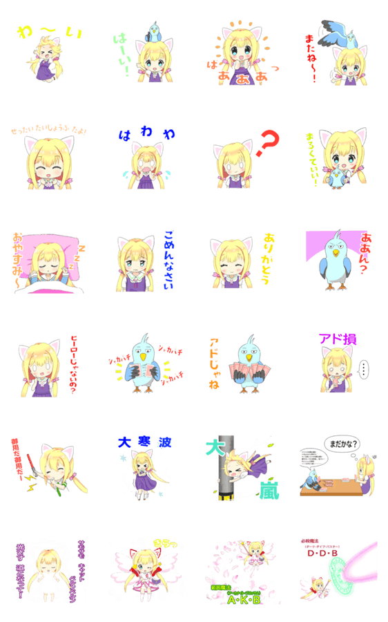 カードゲームで遊ぶソリティアちゃんのスタンプが登場。外では魔法少女、中では親友の鳥とカードゲームで楽しく暮らしています。