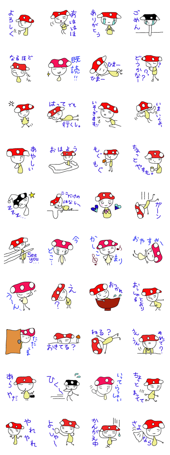 ゆるゆるキュートなきのこさんがあなたの気持ちを伝えます。