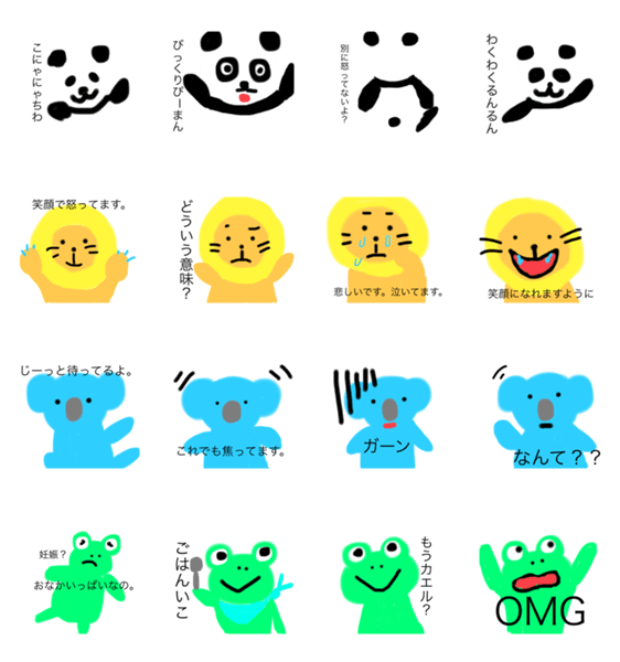 | スタンプ説明 | 手書きで書いたゆるい動物たちです。相手を穏やかな気持ちにさせたい時に使ってほしいです。 |
