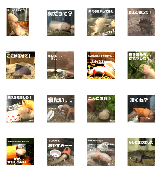 日常で使いやすいウーパールーパーです。LINEスタンプメーカーでつくったスタンプです。