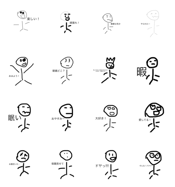 初めて作ったスタンプなので下手ですみません感情豊かすぎる棒人間を書いてみました