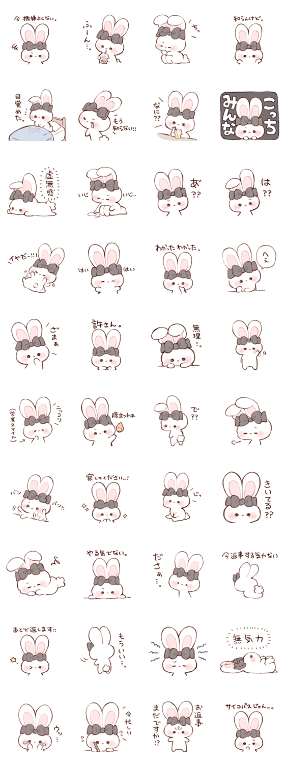 ご機嫌斜めなうさぎちゃんのスタンプです。 かわいいを保ちつつ毒舌な言葉を使いたい方、ぜひ。