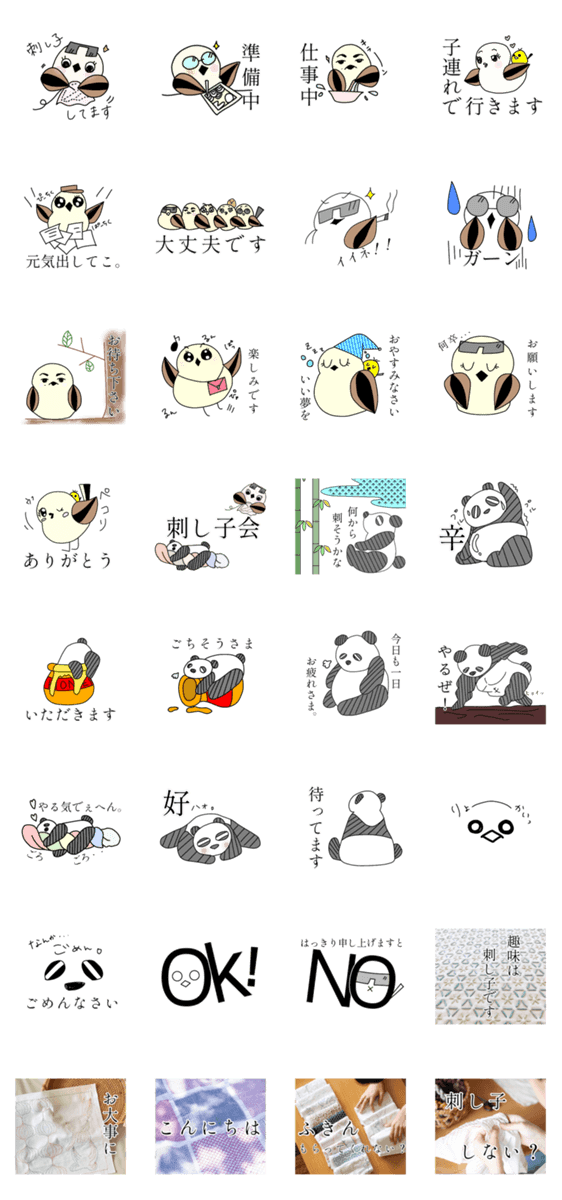 | スタンプ説明 | さなのんの仲間たちと公式キャラクターの「ささパン」のLINEスタンプです.刺し子好きな方に使っていただきたいです! |