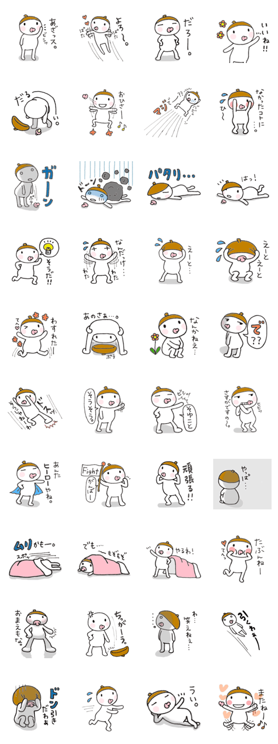どんぐり坊や、第2弾です!老若男女問わず使えるスタンプです!皆さん使ってやってください!