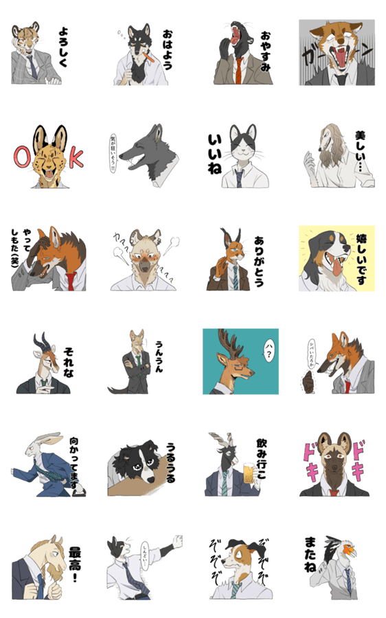 サラリーマンの獣人のスタンプです。使いやすいのでケモナーさんにもそうでない方にもオススメです。