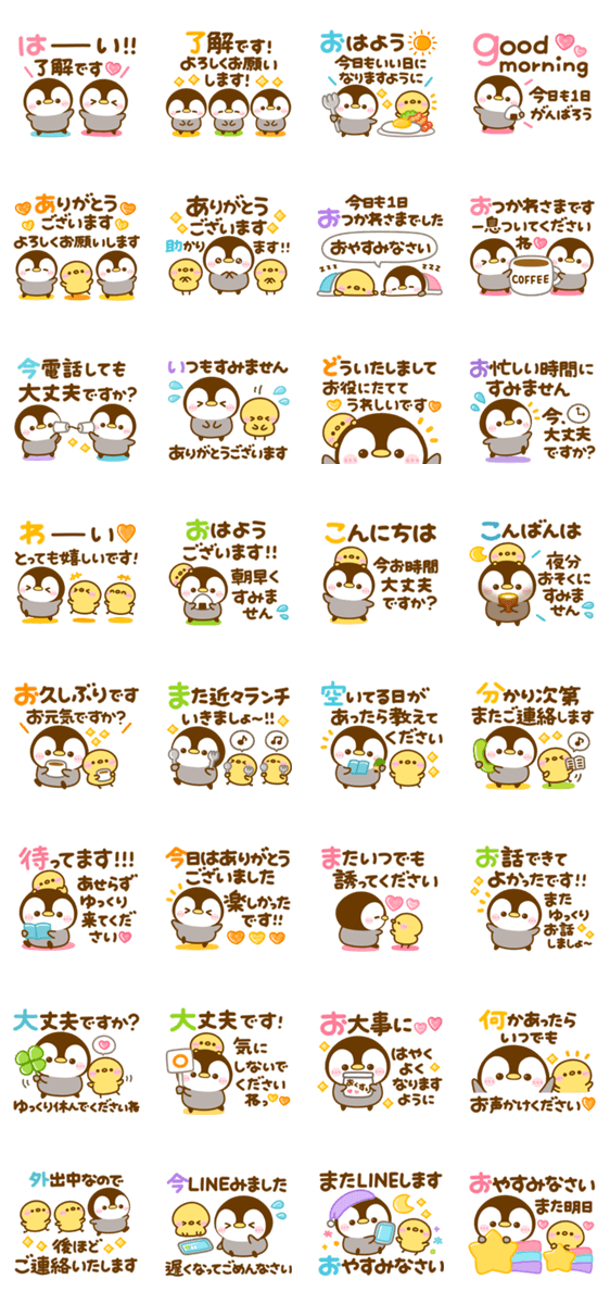 感謝の気持ち♡思いやりの気持ちなど♪いろいろな気持ちが伝わる長文のぺんぺんスタンプです。ペンギン