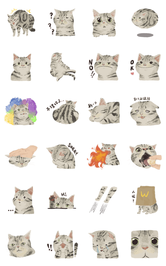 白ネコのあいうえお・・・ってるスタンプ