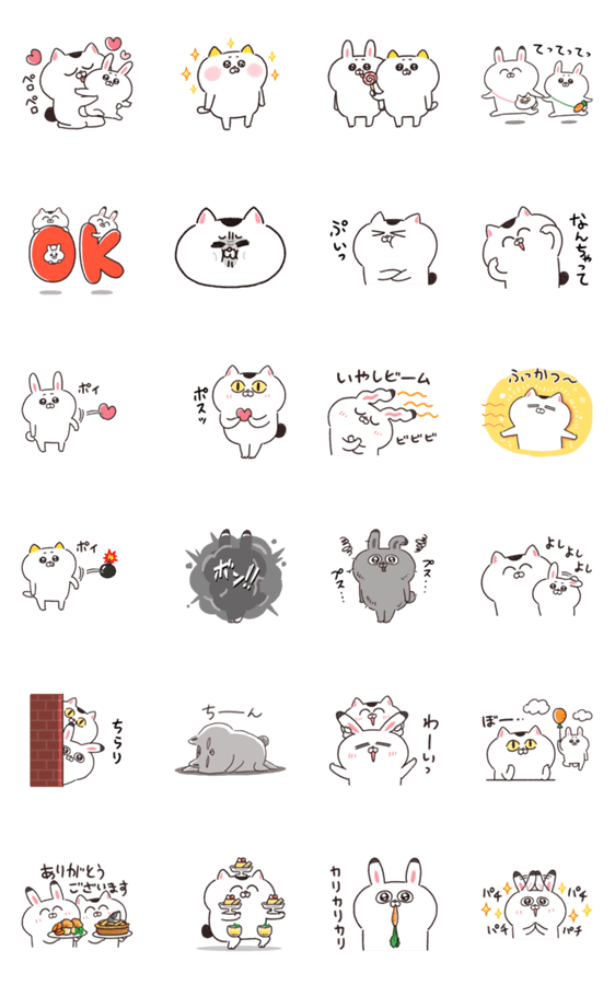 ねこちゃんとうさちゃんの仲良しスタンプ。ちび猫とちびうさもいるよ!