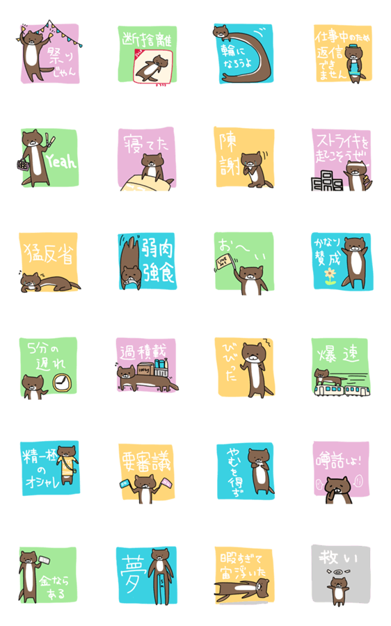 ゆるいカワウソが限られた特定の状況になるスタンプです。