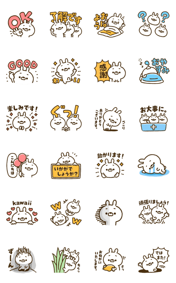 毎日気軽に使える人参とうさぎのスタンプです。挨拶、お返事など日常的な言葉を敬語を含め収録した無難で使いやすいセットです!