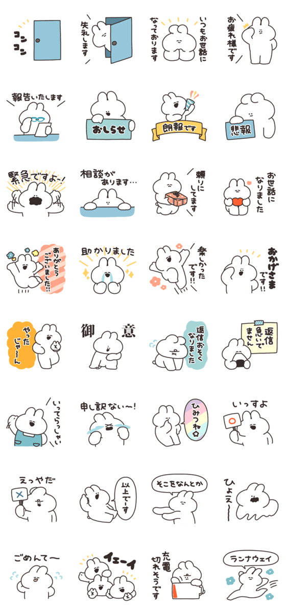 「基本あいさつうさちゃん」をリメイクしたスタンプです。